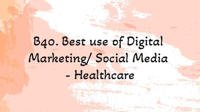 B40. Best use of Digital Marketing/ Social Media - Healthcare